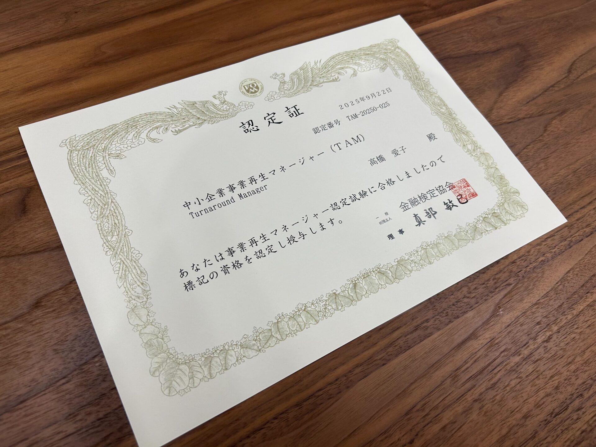 最終日には(社)金融検定協会認定の「ターンアラウンドマネージャー検定試験」が行われ、何とか無事に合格!